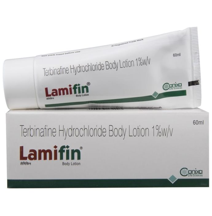 Lamifin Lotion is used to treat a wide range of fungal infections of the skin and nails, including ringworm. It works by killing the fungi that cause the infection. Lamifin Lotion is for external use only. It should be used in the dose and duration suggested by the doctor. The affected area should be clean and dry before the application of this medicine. You must wash your hands thoroughly before and after application. Do not stop using it until you have finished the complete course, even when you feel better. If you stop using this medicine too early, the fungi may continue to grow and the infection may return or worsen. The most common side effects of this medicine include application site reactions like burning, irritation, itching, and redness, and skin peeling. These are usually mild but let your doctor know if they bother you or last more than a few days. Avoid direct contact with the eyes, nose, or mouth. If accidental exposure occurs, rinse immediately with plenty of water. You must inform your doctor if there’s no improvement even after four weeks of treatment. It is not likely that other medicines you take by mouth or injection will affect the way this medicine works but inform your doctor about all other medicines you are taking. Also, let your doctor know if you have used a similar medicine before and had an allergic reaction. Pregnant and breastfeeding mothers should consult their doctor before using it.