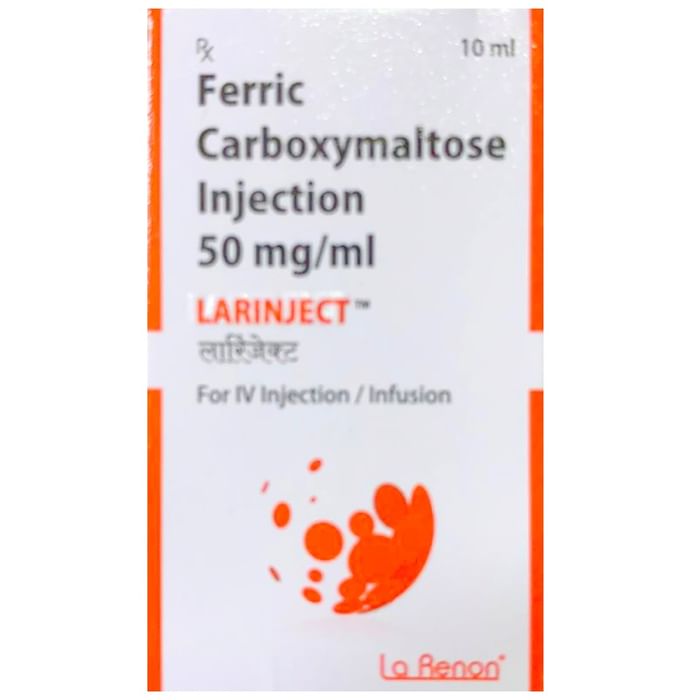 In Treatment of Iron deficiency anemia Anaemia is a condition where your body does not have enough red blood cells to carry oxygen around your body. If you do not have enough iron from the foods you eat (because of poor nutrition or poor absorption of the mineral), your body will produce fewer red blood cells and can cause anaemia. Larinject 50mg Injection is an iron replacement product. It can boost your levels of red blood cells and reduce the symptoms of anaemia such as tiredness and weakness. This medicine is given as an injection by a doctor or nurse, usually in two doses 7 days apart. Make sure you attend all appointments. You should not have this medicine if your anaemia is not caused by a lack of iron.