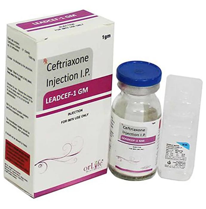 Leadcef 1gm Injection is an antibiotic belonging to the cephalosporin group, which is used to treat bacterial infections in your body. It is effective in infections of the brain (e.g., meningitis), lungs (e.g., pneumonia), ear, urinary tract, skin & soft tissues, bones & joints, blood, and heart. Leadcef 1gm Injection may also be used to prevent infections during surgery. It is given as a drip (intravenous infusion) or as an injection directly into a vein or a muscle under the supervision of a healthcare professional. Your doctor will decide the correct dose for you. This medicine will be given to you regularly at evenly spaced intervals as per the schedule prescribed by your doctor. Do not skip any doses and finish the full course of treatment even if you feel better. Stopping the medicine too early may lead to the returning or worsening of infection. The most common side effects of this medicine include diarrhea, rash, and changes in liver function tests and blood cell counts. Some people may develop temporary redness or pain at the site of injection. These side effects are usually mild but let your doctor know if they bother you or do not go away. Before taking it, you should let your doctor know if you are allergic to any antibiotics or have any kidney or liver problems. You should also let your healthcare team know all other medicines you are taking as they may affect, or be affected by this medicine.