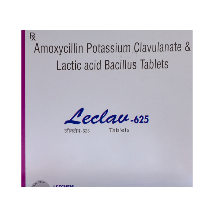 Leclav 625 Tablet is a penicillin-type of antibiotic that helps your body fight infections caused by bacteria. It is used to treat infections of the lungs (e.g., pneumonia), ear, nasal sinus, urinary tract, skin, and soft tissue. It will not work for viral infections such as the common cold. Leclav 625 Tablet is best taken with a meal to reduce the chance of a stomach upset. You should take it regularly at evenly spaced intervals as per the schedule prescribed by your doctor. Taking it at the same time every day will help you to remember to take it. The dose will depend on what you are being treated for, but you should always complete a full course of this antibiotic as prescribed by your doctor. Do not stop taking it until you have finished, even when you feel better. If you stop taking it early, some bacteria may survive and the infection may come back or worsen. The most common side effects of this medicine include vomiting, nausea, and diarrhea. These are usually mild but let your doctor know if they bother you or will not go away. Before taking it, let your doctor know if you are allergic to any antibiotics or have any kidney or liver problems. You should also let your healthcare team know about all other medicines you are taking as they may affect, or be affected by, this medicine. This medicine is generally regarded as safe to use during pregnancy and breastfeeding if prescribed by a doctor.