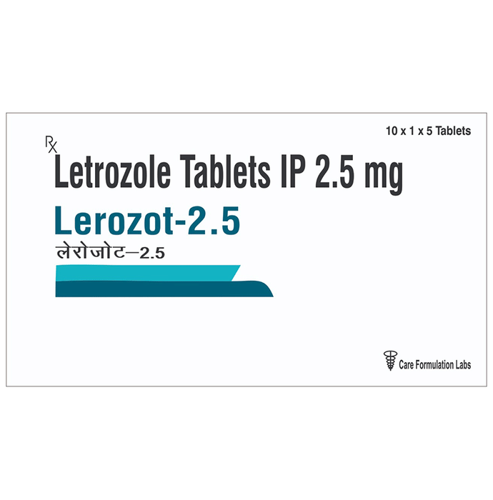 Lerozot 2.5 Tablet helps treat breast cancer in post-menopausal women. It may be used alone or with other treatments, such as surgery or radiation. It can also be used in patients with advanced breast cancer to stop the tumor from spreading to other parts of the body. Lerozot 2.5 Tablet is also helpful in the treatment of infertility. It can be taken with or without food, but take it at about the same time to get the most benefit. The dose and frequency depend on what you are taking it for. Your doctor will decide how much you need to improve your symptoms. You should take this medicine for as long as it is prescribed. This medicine's most common side effects include hot flashes, fatigue, increased sweating, and increased level of cholesterol (hypercholesterolemia). If these bother you or appear serious, let your doctor know. Your doctor may suggest ways to prevent or reduce these. Before taking this medicine, tell your doctor if you have ever had liver or kidney disease, or have a history of osteoporosis (thinning or wasting of bones). Your doctor should also know about all other medicines you are taking as many of these may make this medicine less effective or change the way it works. Tell your doctor if you are pregnant or breastfeeding. Your doctor may perform some blood tests to check for vitamin D level or bone density before and during treatment.