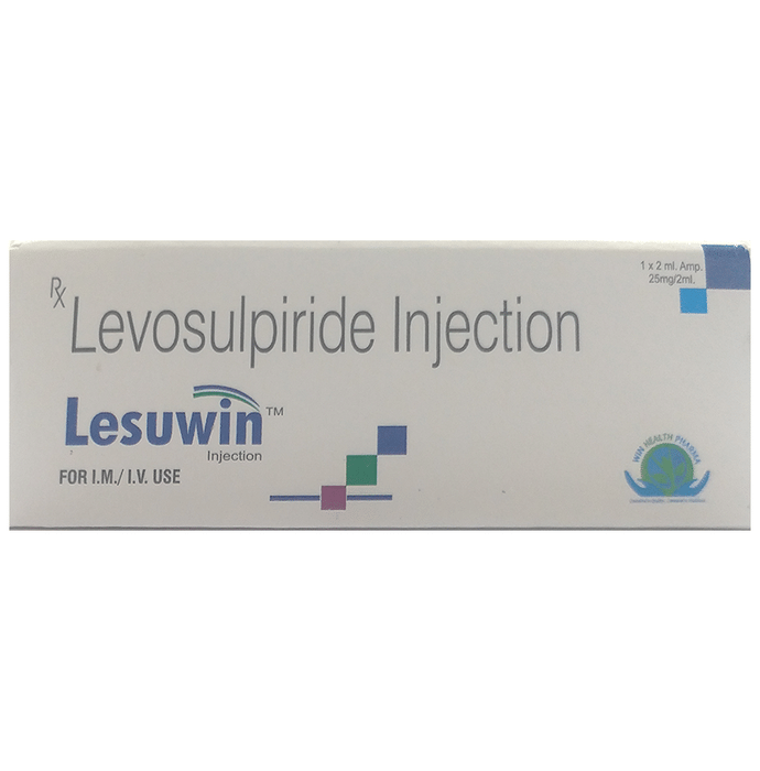 Lesuwin Injection is a medicine used in the treatment of gastrointestinal problems like functional dyspepsia, nausea, vomiting, and diabetic gastroparesis. It improves food movement and treats disorders of the stomach and intestines. Lesuwin Injection is given as an injection by a doctor or a nurse. It is usually recommended when the patient exhibits severe nausea and vomiting and oral administration is not feasible. It is generally given 2-3 times a day or as recommended by the doctor. Get the injection as many times as the doctor has prescribed and do not stop it suddenly. Once the symptoms subside, you can switch to oral therapy. Some common side effects of this medicine include menstrual disorders, breast enlargement in males, increased prolactin level in the blood, and increased libido. It may also cause drowsiness in some people, so do not drive or do anything that requires mental focus until you know how this medicine affects you. Consult your doctor immediately if there are missed periods, abnormal milk secretion, or changes in sexual desire. They may be able to suggest ways to prevent or reduce the side effects. Before taking this medicine, let your doctor know if you have any medical conditions such as heart disease, history of epilepsy, or gastrointestinal hemorrhage. Let your doctor also know about all the other medicines that you are taking. Pregnant and breastfeeding women should consult their doctors before taking this medicine.