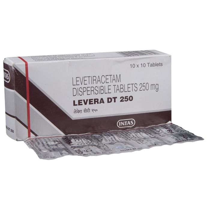 Levera DT 250 Tablet is an anti-epileptic medicine used to treat seizures (fits) in epilepsy. It can be used alone or along with other medicines. It helps to prevent seizures for as long as you continue to take it. Levera DT 250 Tablet suppresses the abnormal electrical activity in the brain. You can take it with or without food but try to take it at the same time each day to get the most benefit. The dose will depend on your condition and how you respond to the medicine. Your doctor will advise the right dose for you. It is generally advised as a long-term treatment. You should continue taking it for as long as your doctor has told you to, even if you feel well. If you stop or miss doses your seizures could get worse. Some common side effects of this medicine include dizziness, headache, infection, irritation, nasal congestion (stuffy nose), sleepiness, behavior changes, aggressive behavior, and decreased appetite. Side effects are more common during the first few weeks and usually lessen as your body gets used to the medicine. Most of these side effects do not need medical attention, but some of them can be serious. A small number of people being treated with this medicine have had thoughts of harming or killing themselves. Contact your doctor if your mood changes for the worse. Before taking it, you should tell your doctor if you have kidney problems, depression, or suicidal thoughts and if you are pregnant, planning to become pregnant, or breastfeeding. Your doctor may suggest regular blood tests to monitor your kidney function while taking this medicine.