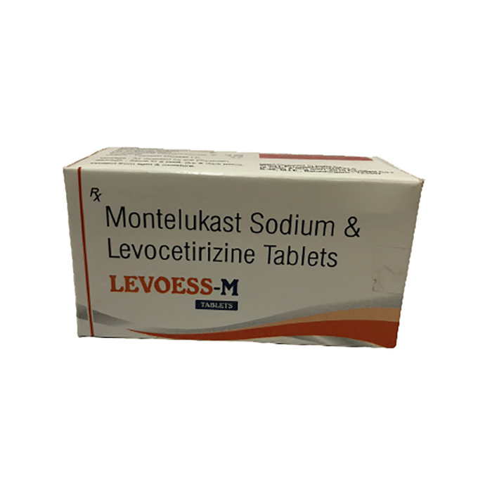 Levoess-M Tablet is a combination medicine used in the treatment of allergic symptoms such as runny nose, stuffy nose, sneezing, itching, swelling, watery eyes and congestion or stuffiness. It also reduces inflammation in the airways and make breathing easier. Levoess-M Tablet is taken with or without food in a dose and duration as advised by the doctor. The dose you are given will depend on your condition and how you respond to the medicine. You should keep taking this medicine for as long as your doctor recommends. If you stop treatment too early your symptoms may come back and your condition may worsen. Let your healthcare team know about all other medications you are taking as some may affect, or be affected by this medicine. The most common side effects are nausea, diarrhea, vomiting, dryness in the mouth, headache, skin rash, flu-like symptoms, and fatigue. Most of these are temporary and usually resolve with time. Contact your doctor straight away if you are at all concerned about any of these side effects. This medicine may cause dizziness and sleepiness, so do not drive or do anything that requires mental focus until you know how this medicine affects you. Avoid drinking alcohol while taking this medicine as it can worsen your sleepiness. Never support self-medication or recommend your medicine to another person. It is beneficial to have plenty of fluids while taking this medication. Before you start taking this medicine it is important to inform your doctor if you are suffering from kidney disease.