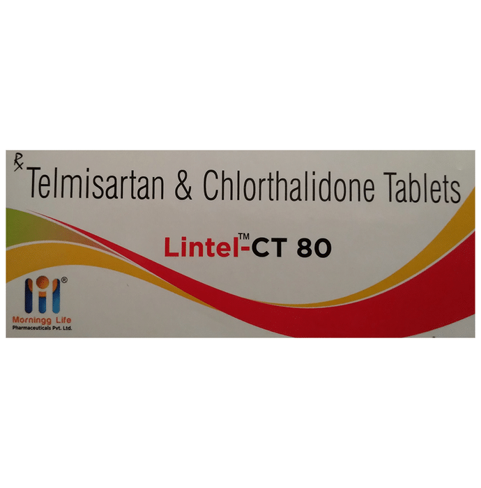 In Hypertension (high blood pressure) Lintel-CT 80 Tablet is a combination of two medicines namely Telmisartan and chlorthalidone. It is generally used when one medicine alone is not controlling your blood pressure effectively. Telmisartan works by relaxing and widening your blood vessels so your blood can flow more easily. This will lower your blood pressure. Chlorthalidone is known as a diuretic (water pill) which increases urine output thereby lowering blood pressure. If your blood pressure is controlled you are less at risk of having a heart attack, stroke, or kidney problems. The medicine must be taken regularly as prescribed to be effective. You do not usually feel any direct benefit from taking this medicine, but it works in the long term to keep you well.