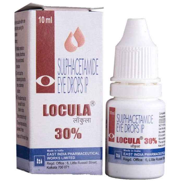 Locula 30% Eye Drop is an antibiotic used to treat bacterial infections of the eye. It fights the infection by stopping the growth of bacteria. This helps to cure the underlying infection. Locula 30% Eye Drop should be used as directed by your doctor. It should be used regularly at evenly spaced time intervals as prescribed by your doctor. Do not skip any doses and finish the full course of treatment even if you feel better. Stopping the medicine too early may lead to the infection returning or worsening. It is effective in killing many types of bacteria. However, it will not work for other types of eye infections (e.g., viral) and therefore, should only be used if prescribed by your doctor. Unnecessary use of any antibiotic can lead to a decrease in its effectiveness in the future. Commonly seen side effects seen with this medicine include temporary eye irritation and stinging in the eyes after administration. Consult your doctor if these side effects persist or if your condition worsens. Seek emergency medical help if you get a rash, itchy skin, swelling of face and mouth, or have difficulty breathing. Contact lenses should not be worn while you are using this medicine or while you have a bacterial eye infection.