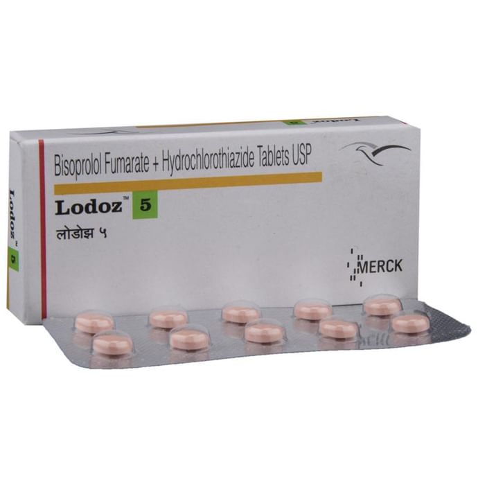 Lodoz 5 Tablet is a combination of two medicines used to treat hypertension (high blood pressure). It helps to control blood pressure when a single medication is not effective. It also helps to reduce chances of any future heart attack and stroke. Lodoz 5 Tablet is taken with or without food preferably in the morning to avoid frequent urination at night. Keep taking it for as long as advised by your doctor. Even if you feel well, do not stop this medicine on your own because high blood pressure often has no symptoms. If you stop taking it, your condition may get worse. Keeping active with regular exercise, reducing your weight and eating a healthy diet will also help control your blood pressure. Follow your doctor’s advice while taking this medicine. Nausea, constipation, diarrhea, and fatigue are some common side effects of this medicine. Consult your doctor If any of these bother you, or get worse, or Do not go away. Drink plenty of fluids while taking medicine to overcome muscle weakness, dry mouth and extreme thirst. Dizziness or headache may occur due to low blood pressure but this gets better with time. Before taking it, let your doctor know if you have any liver or kidney problems. Pregnant or breastfeeding women should also consult their doctor for advice before taking this medicine. You also need to tell your doctor what other medicines you are taking especially those used to treat high blood pressure or heart conditions. You should have your blood pressure, kidney function, blood sugar level and the levels of salts such as potassium or magnesium checked regularly to make sure that this medicine is working properly.
