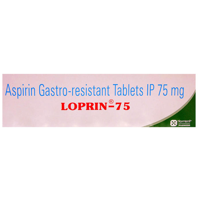 Loprin 75 Tablet is an antiplatelet medicine used to treat and prevent heart attacks, strokes, and heart-related chest pain (angina). It helps to prevent the formation of blood clots in your blood vessels. It is a very widely used medicine for heart protection. Loprin 75 Tablet is usually best taken with food otherwise it may upset your stomach. The dose that is right for you depends on what you are taking it for and how well it helps your symptoms. You should take it as recommended by your doctor. The most common side effects of this medicine are heartburn or upset stomach, nausea, and vomiting. These are not usually serious but if you are worried, ask your doctor about ways of reducing or preventing them. This medicine may sometimes cause you to bleed more easily (for example you may get nosebleeds or bruises). Before taking it, you should let your doctor know if you have ever had a prolonged problem when your blood did not clot properly or if you have had an ulcer or bleeding in your stomach or intestine. To make sure this medicine is safe for you, also tell your doctor if you have trouble with your liver or kidneys, have high blood pressure, or asthma. Let your doctor know about all the other medicines you are taking because they may affect, or be affected by, this medicine. Pregnant or breastfeeding women should consult their doctor before starting treatment. It is usually not recommended in later stages of pregnancy and while breastfeeding. Avoid drinking alcohol while you are taking this medicine. Heavy drinking can increase your risk of stomach bleeding.
