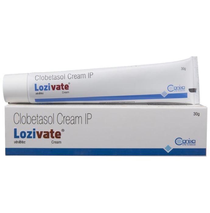 Lozivate Cream belongs to a group of medicines called steroids. It is used to treat various skin conditions such as dermatitis, eczema, and allergies. It works by reducing swelling, redness, and itchiness of the skin and prevents further irritation. Lozivate Cream is meant for external use and is to be used only as advised by your doctor. Wash and dry the affected area before applying a thin layer of the medicine. Avoid any contact with your eyes, nose, or mouth. Rinse it off with plenty of water if you accidentally get it in these areas. Avoid covering the treated area with airtight dressings such as bandages unless directed by a doctor. Using the medicine may cause skin thinning, burning sensation, irritation, redness, and swelling at the site of application. These are temporary and usually resolve with time. However, if they persist or worsen, let your doctor know. Lozivate Cream is not recommended to be used in children. Pregnant and breastfeeding mothers should consult their doctors before using this medicine.
