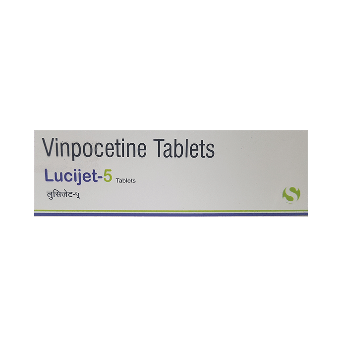 Lucijet 5 Tablet is a prescription medicine used in the treatment of Alzheimer's disease, stroke and memory loss in Parkinson's disease. It can also be used to treat age related memory loss and head injury. It helps in the improvement of brain function and provides enhancement of focus. Lucijet 5 Tablet may be taken with or without food, preferably at the same time each day. Take it as advised by your doctor and if you miss any doses, take it as soon as you remember. Do not skip any doses and finish the full course of treatment even if you feel better. Do not stop taking it suddenly without talking to your doctor. Some common side effects of using this medication are dryness in mouth, flushing (sense of warmth in the face, ears, neck, and trunk) headache, insomnia (difficulty sleeping). However, these are temporary and usually subside on their own after some time. Please consult your doctor if these do not subside or bother you. Before taking Lucijet 5 Tablet, inform your doctor if you are suffering from seizures (epilepsy or fits) or any liver problems. This medicine may cause changes in your blood pressure and sugar levels, so it is better to monitor them regularly.