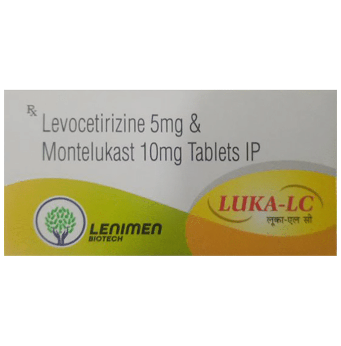 Luka-LC Tablet is a combination medicine used in the treatment of allergic symptoms such as runny nose, stuffy nose, sneezing, itching, swelling, watery eyes and congestion or stuffiness. It also reduces inflammation in the airways and make breathing easier. Luka-LC Tablet is taken with or without food in a dose and duration as advised by the doctor. The dose you are given will depend on your condition and how you respond to the medicine. You should keep taking this medicine for as long as your doctor recommends. If you stop treatment too early your symptoms may come back and your condition may worsen. Let your healthcare team know about all other medications you are taking as some may affect, or be affected by this medicine. The most common side effects are nausea, diarrhea, vomiting, dryness in the mouth, headache, skin rash, flu-like symptoms, and fatigue. Most of these are temporary and usually resolve with time. Contact your doctor straight away if you are at all concerned about any of these side effects. This medicine may cause dizziness and sleepiness, so do not drive or do anything that requires mental focus until you know how this medicine affects you. Avoid drinking alcohol while taking this medicine as it can worsen your sleepiness. Never support self-medication or recommend your medicine to another person. It is beneficial to have plenty of fluids while taking this medication. Before you start taking this medicine it is important to inform your doctor if you are suffering from kidney disease.