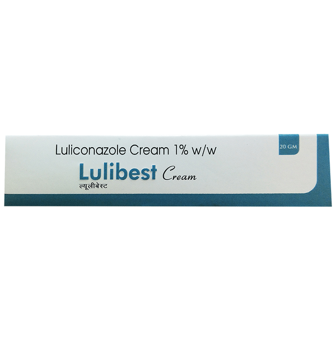 Lulibest 1% Cream is an antifungal medicine used to treat fungal infections of the skin such as athlete’s foot, Dhobie Itch, thrush, ringworm, and dry, flaky skin. It works by killing the fungi that cause these infections. Lulibest 1% Cream should be used in the dose and duration as prescribed by your doctor. Do not use it more often or in higher quantity than prescribed as this will not clear your condition faster and may only increase the side effects. Skin infections will usually get better after 2 to 4 weeks of use. Let your doctor know if your condition does not improve. The effect of the medicine can be increased by keeping the affected area clean and dry, and washing hands before and after use. If you have athlete’s foot, wash your socks or tights thoroughly and change your shoes daily if possible. The most common side effects of this medicine include burning sensation, irritation, itching, and redness at the site of application. It may also cause dryness, peeling, or blistering of the skin. These are not usually serious and resolve with time. Call your doctor if these persist or bother you. Seek emergency help if you notice signs of an allergic reaction such as a rash, swelling of the lips, throat, or face, swallowing or breathing problems, and nausea. Avoid direct contact with your eyes. In case of accidental contact, wash your eyes with water and seek immediate medical attention. It is not likely that other medicines you take by mouth or injection will affect the way this medicine works, but talk to your doctor before using it if you have recently used another medicine that contains a steroid or had an allergic reaction to another antifungal medicine. Ask your doctor before using this medicine if you are pregnant or breastfeeding.