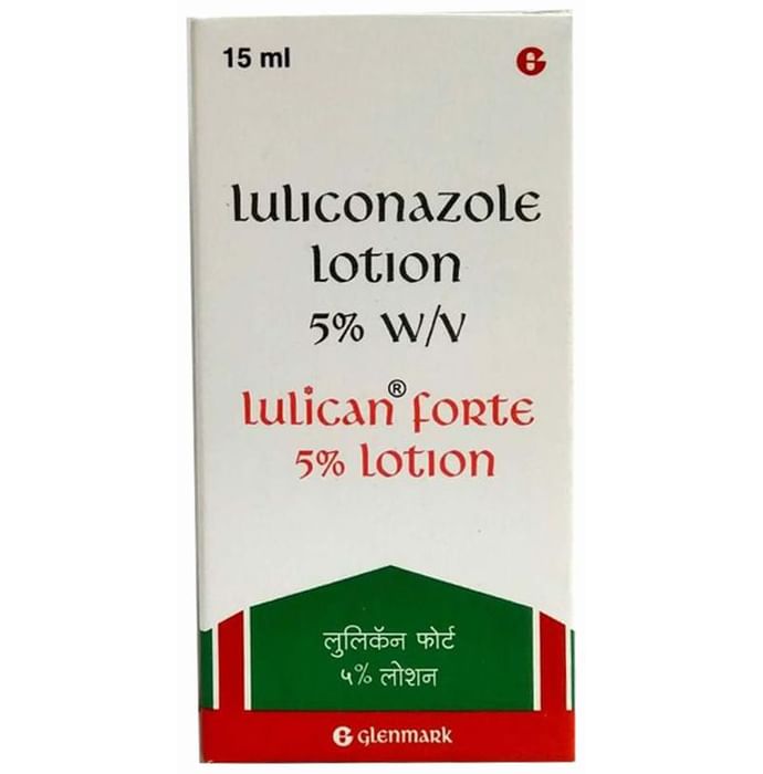 Lulican Forte 5% Lotion is an antifungal medicine used to treat fungal infections of the skin such as athlete’s foot, Dhobie Itch, thrush, ringworm, and dry, flaky skin. It works by killing the fungi that cause these infections. Lulican Forte 5% Lotion should be used in the dose and duration as prescribed by your doctor. Do not use it more often or in higher quantity than prescribed as this will not clear your condition faster and may only increase the side effects. Skin infections will usually get better after 2 to 4 weeks of use. Let your doctor know if your condition does not improve. The effect of the medicine can be increased by keeping the affected area clean and dry, and washing hands before and after use. If you have athlete’s foot, wash your socks or tights thoroughly and change your shoes daily if possible. The most common side effects of this medicine include burning sensation, irritation, itching, and redness at the site of application. It may also cause dryness, peeling, or blistering of the skin. These are not usually serious and resolve with time. Call your doctor if these persist or bother you. Seek emergency help if you notice signs of an allergic reaction such as a rash, swelling of the lips, throat, or face, swallowing or breathing problems, and nausea. Avoid direct contact with your eyes. In case of accidental contact, wash your eyes with water and seek immediate medical attention. It is not likely that other medicines you take by mouth or injection will affect the way this medicine works, but talk to your doctor before using it if you have recently used another medicine that contains a steroid or had an allergic reaction to another antifungal medicine. Ask your doctor before using this medicine if you are pregnant or breastfeeding.