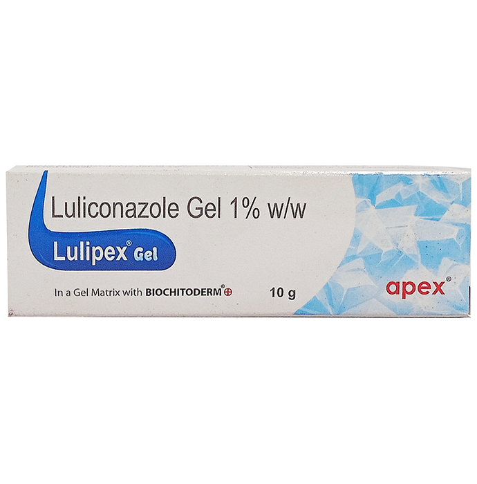 Lulipex Gel is an antifungal medicine used to treat fungal infections of the skin such as athlete’s foot, Dhobie Itch, thrush, ringworm, and dry, flaky skin. It works by killing the fungi that cause these infections. Lulipex Gel should be used in the dose and duration as prescribed by your doctor. Do not use it more often or in higher quantity than prescribed as this will not clear your condition faster and may only increase the side effects. Skin infections will usually get better after 2 to 4 weeks of use. Let your doctor know if your condition does not improve. The effect of the medicine can be increased by keeping the affected area clean and dry, and washing hands before and after use. If you have athlete’s foot, wash your socks or tights thoroughly and change your shoes daily if possible. The most common side effects of this medicine include burning sensation, irritation, itching, and redness at the site of application. It may also cause dryness, peeling, or blistering of the skin. These are not usually serious and resolve with time. Call your doctor if these persist or bother you. Seek emergency help if you notice signs of an allergic reaction such as a rash, swelling of the lips, throat, or face, swallowing or breathing problems, and nausea. Avoid direct contact with your eyes. In case of accidental contact, wash your eyes with water and seek immediate medical attention. It is not likely that other medicines you take by mouth or injection will affect the way this medicine works, but talk to your doctor before using it if you have recently used another medicine that contains a steroid or had an allergic reaction to another antifungal medicine. Ask your doctor before using this medicine if you are pregnant or breastfeeding.