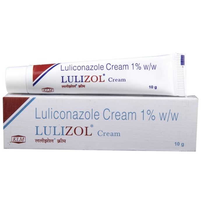Lulizol Cream is an antifungal medicine used to treat fungal infections of the skin such as athlete’s foot, Dhobie Itch, thrush, ringworm, and dry, flaky skin. It works by killing the fungi that cause these infections. Lulizol Cream should be used in the dose and duration as prescribed by your doctor. Do not use it more often or in higher quantity than prescribed as this will not clear your condition faster and may only increase the side effects. Skin infections will usually get better after 2 to 4 weeks of use. Let your doctor know if your condition does not improve. The effect of the medicine can be increased by keeping the affected area clean and dry, and washing hands before and after use. If you have athlete’s foot, wash your socks or tights thoroughly and change your shoes daily if possible. The most common side effects of this medicine include burning sensation, irritation, itching, and redness at the site of application. It may also cause dryness, peeling, or blistering of the skin. These are not usually serious and resolve with time. Call your doctor if these persist or bother you. Seek emergency help if you notice signs of an allergic reaction such as a rash, swelling of the lips, throat, or face, swallowing or breathing problems, and nausea. Avoid direct contact with your eyes. In case of accidental contact, wash your eyes with water and seek immediate medical attention. It is not likely that other medicines you take by mouth or injection will affect the way this medicine works, but talk to your doctor before using it if you have recently used another medicine that contains a steroid or had an allergic reaction to another antifungal medicine. Ask your doctor before using this medicine if you are pregnant or breastfeeding.