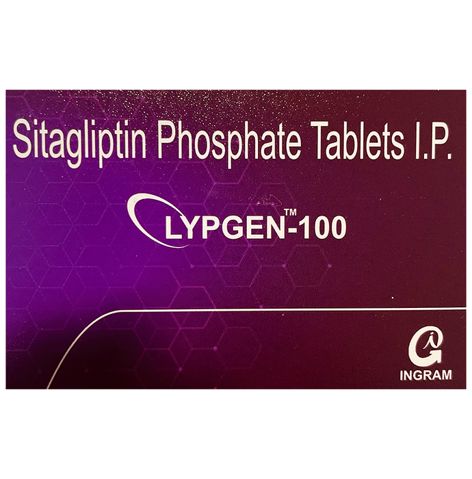 Lypgen 100 Tablet is a medicine used to treat type 2 diabetes mellitus. It is used together with a healthy diet and regular exercise to control blood sugar levels. This helps to prevent serious complications of diabetes like kidney damage and blindness. Lypgen 100 Tablet is normally prescribed when diet and exercise alone or other medicines do not prove sufficient to control your blood sugar level. Your doctor may prescribe it alone or along with other diabetes medicines. It may be taken on an empty stomach or with a meal. The dose will depend on your condition, and blood sugar levels. Therefore, you should use it as advised by your doctor. You should take it regularly at the same time each day to get the most benefit, and you should not stop unless your doctor recommends it. This medicine is helping you to control your blood sugar levels and prevent serious complications in the future. It is important to stay on the diet and exercise program recommended by your doctor while taking this medicine. Your lifestyle plays a big part in controlling diabetes. The most common side effect of taking this medicine is a headache. This is usually minor and improves with time. Low blood sugar level (hypoglycemia) is a possible side effect if you are also taking other diabetes medicines like insulin or sulfonylurea, so you need to know how to recognize and deal with it. It may also cause upper respiratory tract infections like sore throat, cough, and cold. Contact your doctor if the side effects worry you or if they do not go away. Before taking this medicine, let your doctor know if you have ever had kidney disease, heart or pancreas problems, or if you drink a lot of alcohol. Pregnant or breastfeeding women should also consult their doctor before taking it. Some other medicines you are taking may interfere with this medicine's working. So, make sure your doctor knows about all the other medicines you are using. Limit your alcohol intake while taking this medicine because it can increase your risk of developing low blood sugar levels. You may need regular tests such as kidney function and blood glucose levels to check that the medicine is working properly.