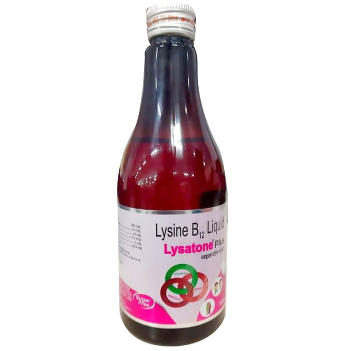 Lysatone Plus Syrup Sugar Free is an amino acid. It is used to treat lysine deficiency. It also helps to relieve cold sore caused by a viral infection. It may also facilitate the absorption of calcium from the small intestine and improve the athletic efficiency of the body. Lysatone Plus Syrup Sugar Free can be taken with or without food, but take it in the dose and duration as advised by your doctor. Do not start or stop taking the medicine without a doctor's prescription. Lysatone Plus Syrup Sugar Free is usually a safe medicine, however, it may cause stomach pain, nausea, vomiting, or diarrhea in some people. Your doctor may suggest blood or urine tests while you are taking the medicine. Before starting the medicine, inform your doctor if you have any other medical conditions or are taking any other medications. Patients with severe kidney disease should not take this medicine unless prescribed by the doctor. Pregnant and breastfeeding women must take this medicine only with a valid prescription.
