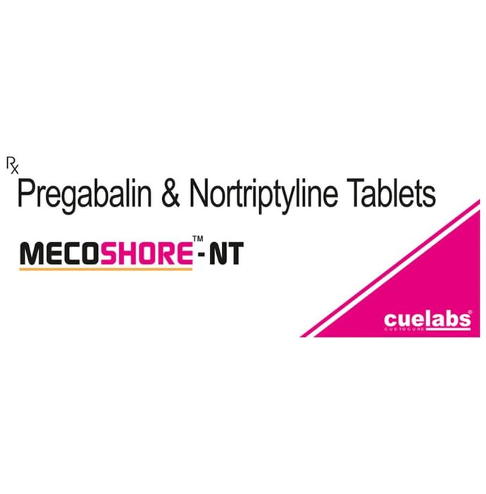 Mecoshore-NT Tablet is a combination medicine used for the treatment of neuropathic pain. This medicine decreases the pain by stopping the movement of pain signals to the brain. Mecoshore-NT Tablet is taken by mouth, with or without food and preferably at bedtime. It is advised to take it at the same time each day as this helps to maintain a consistent level of medicine in the blood. Take this medicine in the dose and duration advised by your doctor as this is a habit-forming medicine. If you miss a dose of this medicine, take it as soon as you remember. Finish the full course of treatment even if you feel better. It is important not to stop this medication suddenly without talking to the doctor. Some common side effects of this medicine include constipation, difficulty in urination, weight gain, tiredness, and dryness in mouth. It may also cause dizziness and sleepiness. So, do not drive or do anything that requires mental focus until you know how this medicine affects you. This medicine may cause weight gain and to control it, you should exercise regularly and take a balanced diet. It is important to inform your doctor if you develop any unusual changes in mood or behavior, new or worsening depression, or suicidal thoughts. Before taking this medicine let your doctor know if you suffer from kidney or liver disease. Your doctor should also know about all other medicines you are taking as many of these may make this medicine less effective or change the way it works. Inform your doctor if you are pregnant, planning pregnancy or breastfeeding.