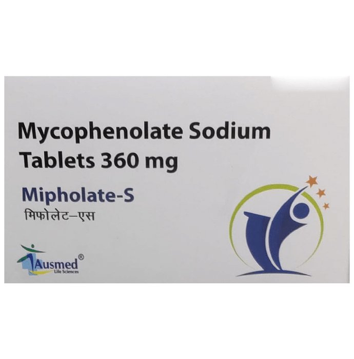Mipholate-S Tablet belongs to a group of medicines called immunosuppressants. It is used with other medicines to prevent your body from rejecting an organ (such as a kidney, heart, or liver) after a transplant. It works by weakening your body’s immune system, so it does not attack the transplanted organ. The amount of Mipholate-S Tablet you take depends on the type of transplant you have. Follow your doctor’s instructions on this. You should take it on an empty stomach, at least one hour before or two hours after a meal. Swallow it as a whole, do not crush, chew, break, or open them. Take the medicine regularly to get the most benefit and keep taking it even if you feel well. If you stop taking it, you may increase the chances of rejecting your transplanted organ. The treatment will continue for as long as you need it to prevent rejection. The most common side effects of Mipholate-S Tablet are nausea, vomiting, diarrhea, stomach pain, headache, high blood pressure, and changes in the number of white blood cells. Because it suppresses your immune system, you may catch more infections than usual. There is also an increased risk of developing some cancers for this reason. There is a long list of potential side effects. You should ask your doctor about them and what signs to look out for because some can be serious and need urgent medical attention. This medicine can cause birth defects and miscarriages so do not take it if you are pregnant, planning to become pregnant, or breastfeeding. You should talk to your doctor before taking this medicine if you have any signs of infection, if you have any unexpected bruising or bleeding and if you have ever had a problem with your digestive system. Your doctor also needs to know what other medicines you are taking as there are many which interact with this medicine and affect the way it works. You will have regular tests to check for any changes in the number of your blood cells, inform your doctor if you notice unexplained bruising or bleeding, sore throat, mouth ulcers, or fever.