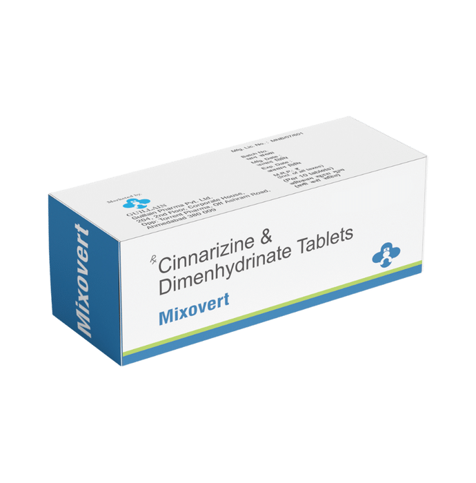 In Treatment of Vertigo Vertigo means a spinning sensation or dizziness that is triggered due to frequent movement. It can happen due to many reasons but it may also occur without any underlying disease. Mixovert Tablet helps treat this sensation effectively. If you feel dizzy while getting up from the bed, sit for a while and then rise slowly to avoid having an accidental fall. It will be more effective if you take this medicine regularly as prescribed so try not to miss doses. It may take a couple of weeks before you notice any improvements but keep taking it, even if you do feel better, until your doctor advises it is safe to stop.