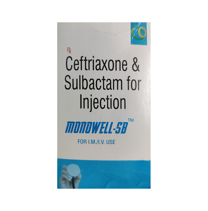 Monowell-SB Injection is a combination medicine. It is prescribed to treat various types of bacterial infections. It fights against the microorganisms to prevent their growth and further spread of the infection. Monowell-SB Injection should only be administered under the supervision of a healthcare professional. Do not miss any scheduled appointments for taking this medicine. The course of the treatment must be completed even if you feel better. Sudden discontinuation of the treatment may affect the potency of the medicine. Some common side effects of this medicine are nausea, vomiting, diarrhea, indigestion, etc. If any of the side effects get aggravated, you must consult your doctor immediately. If you experience any allergic reaction (rashes, itching, swelling, shortness of breath, etc.), you must seek immediate medical help. Before taking this medicine, you should tell your doctor if you are taking any medicines for any health condition. Pregnant or breastfeeding women should also consult with their doctor before taking it. Avoid drinking alcohol as it can cause excessive drowsiness with this medicine. It usually does not impair your ability to drive, but you should not drive if it makes you feel sleepy or dizzy. You must take adequate rest for a faster recovery, also take a healthy diet and drink plenty of water. Your doctor may ask for a few laboratory and diagnostic tests to know the effects of the medicine on your body.
