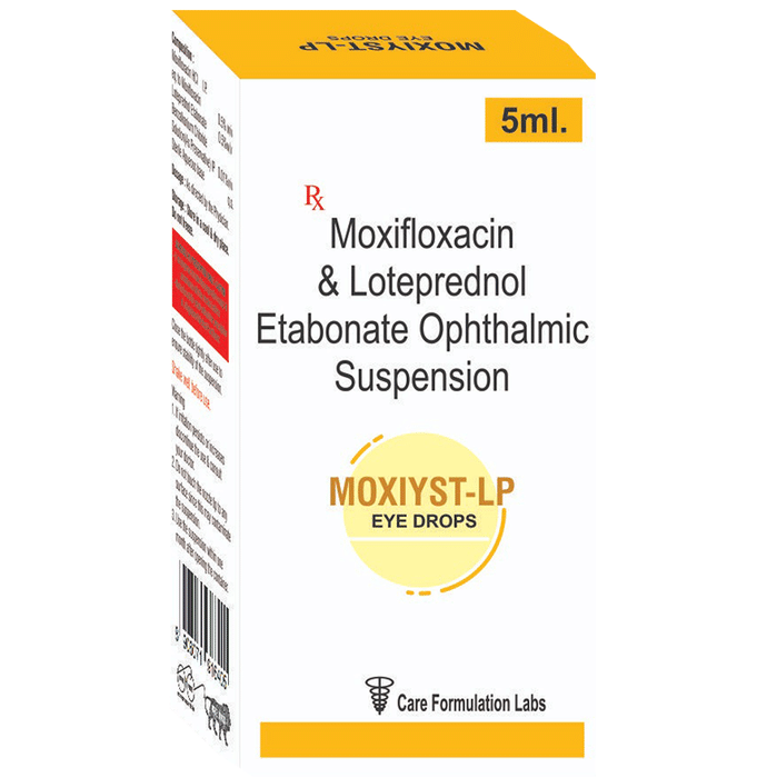 Moxiyst-LP Eye Drop is a prescription medicine used to treat eye infection with inflammation. It kills and stops the growth of bacteria and helps in relieving symptoms such as redness, itching, and swelling. Moxiyst-LP Eye Drop is to be used only in the affected eye. Read the label carefully for instruction before you use the medicine. Use it in the exact dose and duration as advised by the doctor or as instructed in the label. Wash your hands before using this medicine. Complete your dose even if you feel better. Stopping the medicine too early may bring back the infection. Use of this medicine may cause irritation and discomfort immediately on application. These are usually temporary and resolve with time. However, if they persist or get worse, inform your doctor. In case of accidental contact with your ears, nose, or mouth, immediately rinse it with water. Inform your doctor if you have a known allergy to any of the ingredients in this medicine or if you are taking any other medication. It is advised not to drive or operate heavy machinery immediately after using this medicine as it may cause temporary blurring of vision and may affect your ability to drive.