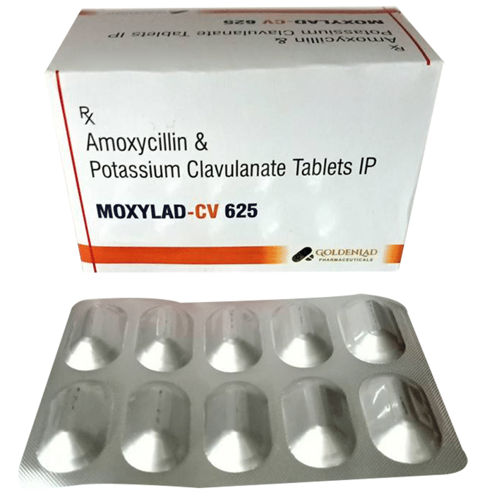 Moxylad-CV 625 Tablet is a penicillin-type of antibiotic that helps your body fight infections caused by bacteria. It is used to treat infections of the lungs (e.g., pneumonia), ear, nasal sinus, urinary tract, skin, and soft tissue. It will not work for viral infections such as the common cold. Moxylad-CV 625 Tablet is best taken with a meal to reduce the chance of a stomach upset. You should take it regularly at evenly spaced intervals as per the schedule prescribed by your doctor. Taking it at the same time every day will help you to remember to take it. The dose will depend on what you are being treated for, but you should always complete a full course of this antibiotic as prescribed by your doctor. Do not stop taking it until you have finished, even when you feel better. If you stop taking it early, some bacteria may survive and the infection may come back or worsen. The most common side effects of this medicine include vomiting, nausea, and diarrhea. These are usually mild but let your doctor know if they bother you or will not go away. Before taking it, let your doctor know if you are allergic to any antibiotics or have any kidney or liver problems. You should also let your healthcare team know about all other medicines you are taking as they may affect, or be affected by, this medicine. This medicine is generally regarded as safe to use during pregnancy and breastfeeding if prescribed by a doctor.