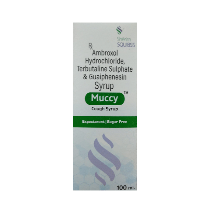 Muccy Syrup Sugar Free is used in the treatment of cough with mucus. It loosens and thins mucus in the nose, windpipe, and lungs. This makes it easier for you to cough it out. It also relaxes and widens the muscles in the airways making it easier for you to breathe. Muccy Syrup Sugar Free is taken with or without food in a dose and duration as advised by the doctor. The dose you are given will depend on your condition and how you respond to the medicine. You should keep taking this medicine for as long as your doctor recommends. If you stop treatment too early your symptoms may come back and your condition may worsen. Let your doctor know about all other medications you are taking as some may affect, or be affected by this medicine. The most common side effects are nausea, vomiting, diarrhea, stomach pain, upset stomach, headache, rash, palpitations, tremor, and increased heart rate. Most of these are temporary and usually resolve with time. Contact your doctor straight away if you are at all concerned about any of these side effects. This medicine can also cause sleepiness, so do not drive or do anything that requires mental focus until you know how this medicine affects you. Avoid drinking alcohol while taking this medicine as it can make sleepiness worse. Never support self-medication or recommend your medicine to another person. It is beneficial to have plenty of fluids while taking this medication. Before taking this medicine, you should tell your doctor if you are pregnant, planning pregnancy or breastfeeding. You should also tell your doctor if you have any kidney or liver diseases so that your doctor can prescribe a suitable dose for you.