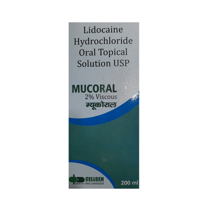 Mucoral 2 % Viscous Oral Topical Solution is a local anesthetic agent. It is used during minor surgical procedures such as dental, oral, diagnostic, or other therapeutic procedures to anesthetize or numb the surgical area. Mucoral 2 % Viscous Oral Topical Solution is used a few minutes before any surgical procedure. It blocks the pain signals to reach the brain by temporarily numbing the surgical area and helps to perform a painless procedure. It may cause itching and burning inside the mouth. These are usually mild and short-lived. If the numbness persists, tell your doctor without delay. If you are allergic to this medicine, do not take it. Before using it, it is very dimportant to tell your doctor if you have any underlying disease or are taking medicines for heart rhythm problems. Ask your healthcare team for advice if you are pregnant or breastfeeding. Also, it is not safe to drive or operate heavy machinery while on medication, as you may feel dizziness.