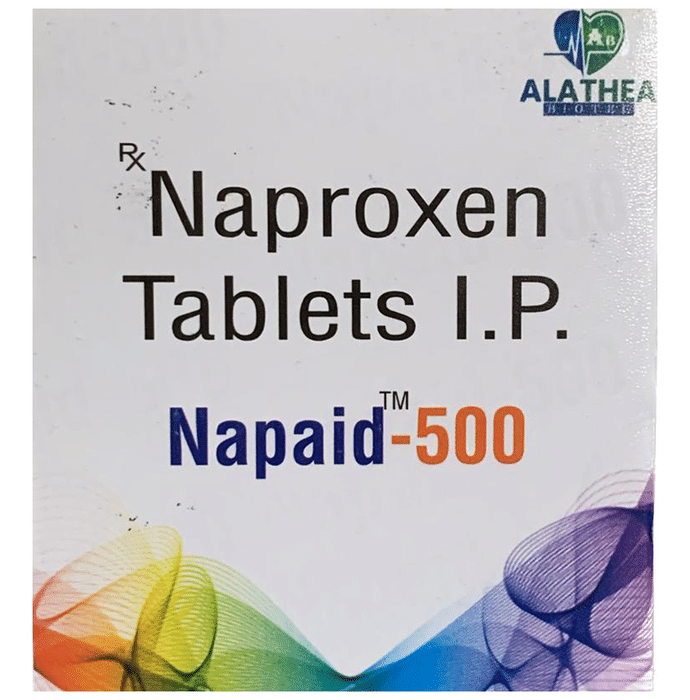 Napaid 500 Tablet is a pain-relieving medicine. It provides relief from pain and inflammation in conditions like osteoarthritis, rheumatoid arthritis, ankylosing spondylitis, gout, and juvenile arthritis. It also helps in relieving muscle and joint pain, headache, toothache, and menstrual cramps. Napaid 500 Tablet should be taken with food to avoid stomach upset and reduce side effects. In general, you should try to use the smallest amount necessary to control your symptoms, for the shortest possible time. You should take this medicine regularly while you need it. Try not to miss doses as it will become less effective if you do. The most common side effects of this medicine include indigestion, abdominal pain, nausea, headache, rash, bruises, and edema. If any of these side effects do not resolve with time or get worse, you should let your doctor know. Your doctor may be able to suggest ways of preventing or reducing the symptoms. This medicine is generally considered safe but is not suitable for everybody. Before you take it, you should tell your doctor if you have kidney problems, asthma, blood disorders, or drink a lot of alcohol. Also, tell your doctor what other medicines you are taking to make sure you are safe. It is best to avoid drinking alcohol while using this medicine.