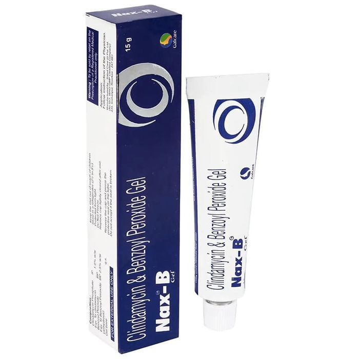 Nax B Gel is a combination of medicines that are used to treat acne. It kills the bacteria which cause acne. It also reduces oil production and replenishes the skin. Nax B Gel should be used in the dose and duration as advised by your doctor. It is for external use only. Wash your hands before using this medicine. Apply only on the affected areas of the skin. It is advised to check the label for directions before use. The most common side effects include skin peeling, redness, dry skin and burning and sensation at the application site. If this side effect persist for a longer duration, inform your doctor. In case by accident, this medicine goes into your eyes, ears, nose or mouth, immediately rinse it with water. Inform your doctor if you notice darkening or discoloration, or severe burning sensation at the treated skin. Inform your doctor if you have known allergies from this medicine. If you are pregnant or suffering from any other condition, please inform your doctor. This medicine is safe to use in breastfeeding mothers.