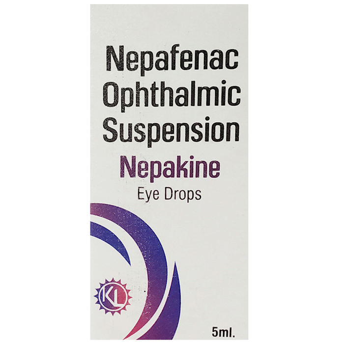 In Post-operative eye pain and inflammation Nepakine Eye Drop helps relieve symptoms such as pain, redness, swelling, itching and watering of eyes after an operation of the eyes. This medicine works by decreasing the production of certain chemicals that cause inflammation of the eyes. This will make it easier for you to go about your daily activities. Use it as prescribed to get the most benefit. If you see no improvement even after a week, talk to your doctor.