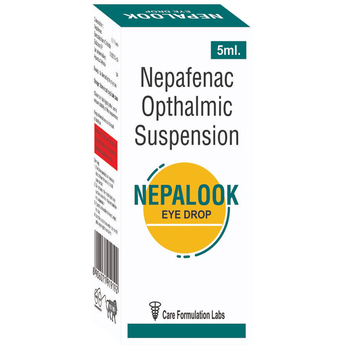 Nepalook Eye Drop is a pain relieving medicine. It is used for treatment of pain and inflammation associated with cataract surgery. Always wash your hands before using Nepalook Eye Drop. Use only the number of drops that your doctor has prescribed and wait for about five minutes between each drop. If you wear contact lenses, remove them before using the drops and wait for at least 15 minutes before putting them back in. You should not touch the tip of the dropper or bottle. This may lead to infection. Use of the medicine may cause decreased vision, foreign body sensation in the eyes, increased intraocular pressure, and watery eyes. These are usually temporary and resolve with time. However, if they persist or get worse, you should let your doctor know. Your doctor may be able to suggest ways of preventing or reducing the symptoms. Before using this medicine, you should tell your doctor about all the other medicines you are taking. You should also tell your doctor if you have any other medical conditions or disorders. Pregnant and breastfeeding women should consult with their doctors before using the medicine.