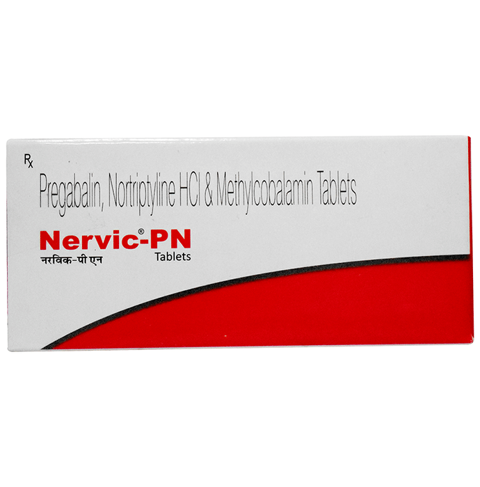 Nervic-PN Tablet is a combination medicine used to treat neuropathic pain. It works by decreasing pain by controlling calcium channel activity of the nerve cells. It also increases the level of chemical messengers in the brain that help in regulating the mood and protect nerve fibers. Nervic-PN Tablet can be taken with or without food. However, it is advised to take it at the same time each day as this helps to maintain a consistent level of medicine in the body. Take this medicine in the dose and duration advised by the doctor. If you miss a dose of this medicine, take it as soon as you remember. Finish the full course of the treatment even if you feel better. It is important not to stop taking this medicine suddenly as it may worsen your symptoms. Some common side effects of this medicine include constipation, weight gain, increased heart rate, and dryness in mouth. It may cause dizziness and sleepiness, so do not drive or do anything that requires mental focus until you know how this medicine affects you. This medicine may cause weight gain and to control it, you should have a balanced diet and exercise regularly. You must inform your doctor if you develop any unusual changes in mood or behavior, new or worsening depression, or suicidal thoughts. Before taking this medicine let your doctor know if you suffer from kidney or liver disease. Your doctor should also know about all other medicines you are taking as many of these may make this medicine less effective or change the way it works. Inform your doctor if you are pregnant, planning pregnancy or breastfeeding.