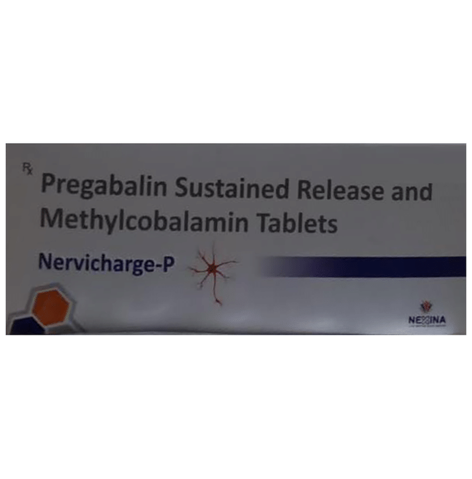 Nervicharge-P Tablet SR is a prescription medicine used for the treatment of neuropathic pain. It decreases pain by modulating calcium channel activity of the nerve cells. This medicine also protects nerve fibers and heal damaged nerve cells. Nervicharge-P Tablet SR is taken by mouth with or without food, preferably at bedtime. It is advised to take it at the same time each day as this helps to maintain a consistent level of medicine in the body. Take this medicine in the dose and duration advised by your doctor as this is a habit-forming medicine. If you miss a dose of this medicine, take it as soon as you remember. Finish the full course of treatment even if you feel better. It is important that this medication is not stopped suddenly without talking to the doctor. Some common side effects of this medicine include dizziness and sleepiness, so do not drive or do anything that requires mental focus until you know how this medicine affects you. The side effects are mild in nature and get improve with time. This medicine may cause weight gain and to control it, you should exercise regularly and take a balanced diet. It is important to inform your doctor if you develop any unusual changes in mood or behavior, new or worsening depression, or suicidal thoughts. Your doctor should also know about all other medicines you are taking as many of these may make this medicine less effective or change the way it works. Inform your doctor if you are pregnant, planning pregnancy, or breastfeeding.