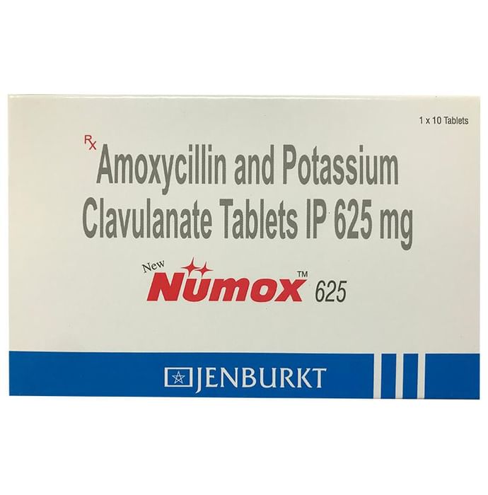 New Numox 625 Tablet is a penicillin-type of antibiotic that helps your body fight infections caused by bacteria. It is used to treat infections of the lungs (e.g., pneumonia), ear, nasal sinus, urinary tract, skin, and soft tissue. It will not work for viral infections such as the common cold. New Numox 625 Tablet is best taken with a meal to reduce the chance of a stomach upset. You should take it regularly at evenly spaced intervals as per the schedule prescribed by your doctor. Taking it at the same time every day will help you to remember to take it. The dose will depend on what you are being treated for, but you should always complete a full course of this antibiotic as prescribed by your doctor. Do not stop taking it until you have finished, even when you feel better. If you stop taking it early, some bacteria may survive and the infection may come back or worsen. The most common side effects of this medicine include vomiting, nausea, and diarrhea. These are usually mild but let your doctor know if they bother you or will not go away. Before taking it, let your doctor know if you are allergic to any antibiotics or have any kidney or liver problems. You should also let your healthcare team know about all other medicines you are taking as they may affect, or be affected by, this medicine. This medicine is generally regarded as safe to use during pregnancy and breastfeeding if prescribed by a doctor.