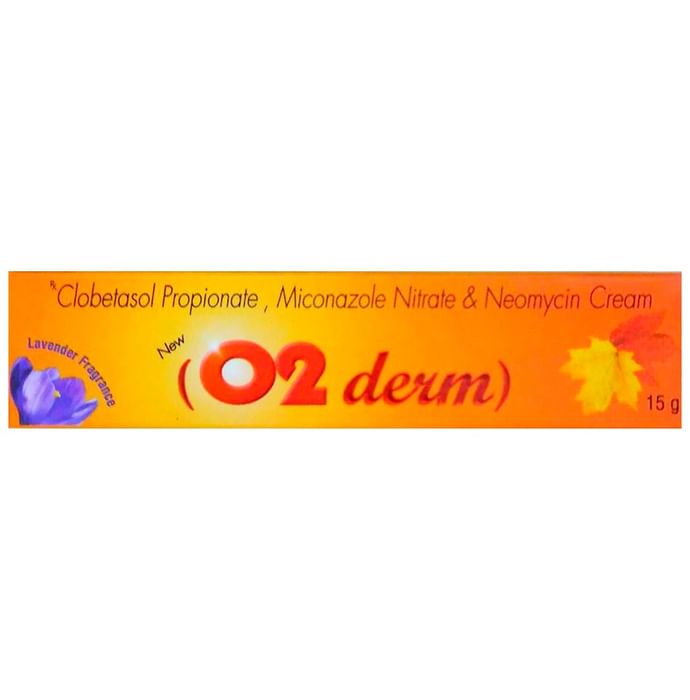 New O2 Derm Cream Lavender is a combination of medicines that is used to treat various types of skin infections. It minimizes symptoms of inflammation such as redness, swelling, and itching. It also prevents the growth of infection-causing microorganisms to promote faster healing of infections. New O2 Derm Cream Lavender is only meant for external use and should be used as advised by your doctor. A thin layer of the medicine should be applied only to the affected areas of the skin with clean and dry hands. If it gets into your eyes, nose, mouth or vagina rinse with water. It may take several days to weeks for your symptoms to improve, but you should keep using this medicine regularly. The course of the treatment should be completed to ensure better efficacy of the medicine. If your condition does not improve or gets worse, you should talk to your doctor. The most common side effect of this medicine includes itching, dryness, redness, and burning sensation at the application site. These are usually self-limiting. Regular application of moisturizer to the skin can help to overcome or prevent dryness of the skin, also you must drink plenty of water to keep yourself hydrated. Serious side effects are rare. You must consult the doctor if you experience any allergic reaction (rashes, itching, swelling, shortness of breath, etc.). Before using this medicine, it is important to tell your doctor if you are taking or have recently taken any other medicines for the same disease or other diseases. Pregnant and breastfeeding women should use this medicine with proper consultation and caution. If you are a known allergic to the medicine, you must refrain from using this medicine and consult the doctor about this condition. During the course of the treatment, do not touch or scratch the infected skin areas as this may worsen or spread the infection.