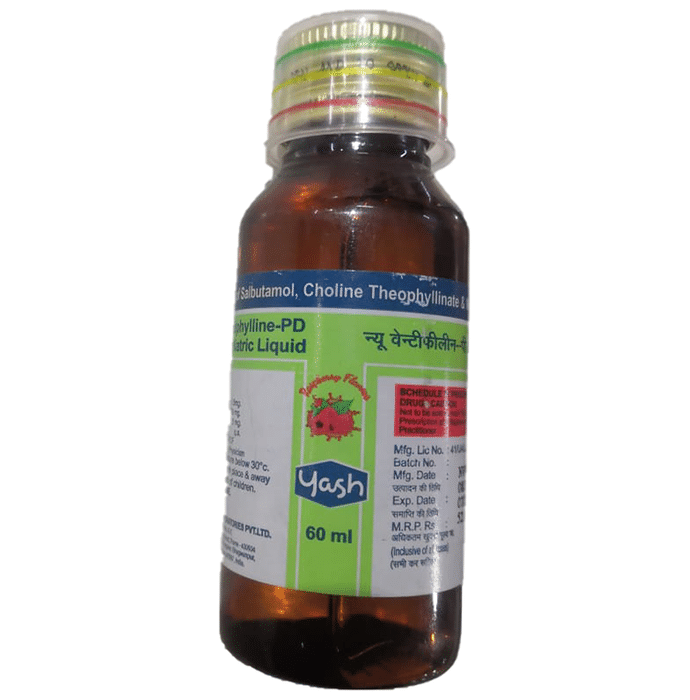 New Ventiphylline PD 1.5 mg/50 mg/0.5 mg Syrup is a combination medicine used to treat cough. It thins mucus in the nose, windpipe and lungs making it easier to cough out. It also provides relief from throat irritation, congestion and stuffiness. New Ventiphylline PD 1.5 mg/50 mg/0.5 mg Syrup is taken without food in a dose and duration as advised by the doctor. The dose you are given will depend on your condition and how you respond to the medicine. You should keep taking this medicine for as long as your doctor recommends. If you stop treatment too early your symptoms may come back and your condition may worsen. Let your doctor know about all other medications you are taking as some may affect, or be affected by this medicine. The most common side effects are nausea, vomiting, stomach discomfort, headache, restlessness, tremor, palpitations, and muscle cramp. Most of these are temporary and usually resolve with time. Contact your doctor straight away if you are at all concerned about any of these side effects. This medicine may also cause dizziness, so do not drive or do anything that requires mental focus until you know how this medicine affects you. Avoid drinking alcohol while taking this medicine as it can make dizziness worse. Never support self-medication or recommend your medicine to another person. Keep it out of reach of children. Before taking this medicine, you should tell your doctor if you are pregnant, planning pregnancy or breastfeeding.