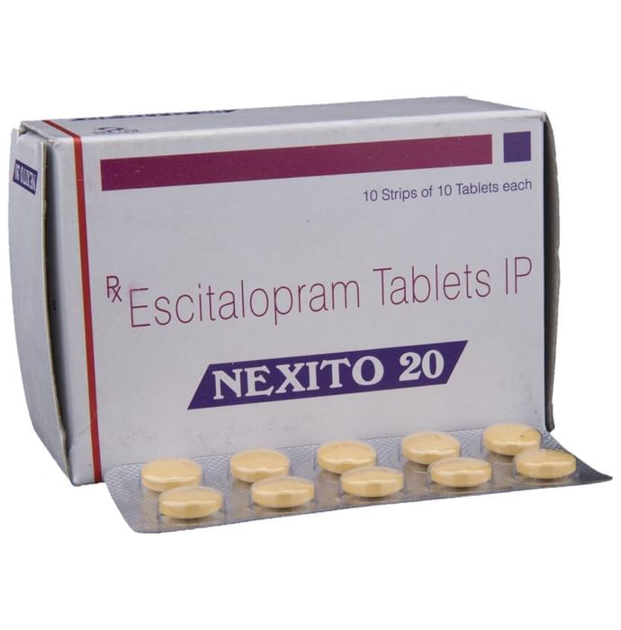 Nexito 20 Tablet is widely prescribed to treat depression and other mental health conditions like anxiety, panic disorder, and obsessive-compulsive disorder. It is a type of antidepressant known as a selective serotonin reuptake inhibitor (SSRI). Nexito 20 Tablet helps recover from depression by improving mood and relieving anxiety and tension. It can be taken with or without food. The dose and how often you need it will be decided by your doctor based on the amount needed to control your symptoms. Your doctor may start you on a lower dose and increase it gradually. Do not change the dose or stop taking it without talking to your doctor, even if you feel well. Doing so may make your condition worse or you may suffer from unpleasant withdrawal symptoms (anxiety, restlessness, palpitations, dizziness, sleep disturbances, etc). To get the most benefit, take this medicine regularly at the same time each day. Your doctor may advise you to take it in the morning if you have trouble sleeping. It may take a few weeks before you start feeling better. Let your doctor know if you do not see any improvement even after 4 weeks. Some common side effects of this medicine include nausea, fatigue, increased sweating, insomnia (difficulty in sleeping), decreased sexual drive, delayed ejaculation, and women may experience difficulties achieving orgasm. Some people may experience sleepiness after taking this medicine. Let your doctor know straight away if you develop any sudden worsening of mood or any thoughts about harming yourself. Before taking Nexito 20 Tablet, you should tell your doctor if you have epilepsy (seizure disorder or fits), diabetes, liver or kidney disease, any heart problems, or are currently taking medicines for depression known as MAO inhibitors. These may affect your treatment. Please tell your doctor about all the medicines you are taking to make sure you are safe.