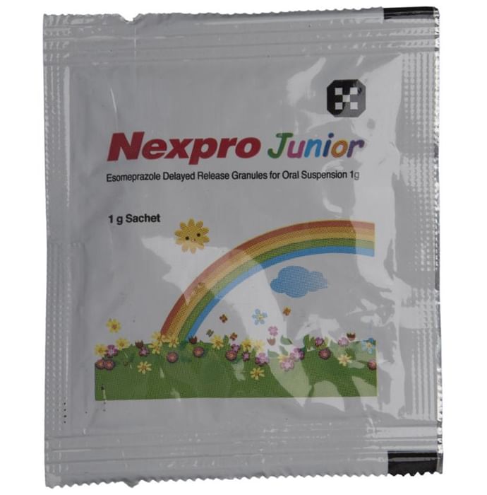 Nexpro Junior Granules for Oral Suspension is a medicine that reduces the amount of acid produced in your stomach. It is used to treat acid reflux, peptic ulcer disease, and other problems in your food pipe. It is also used to prevent and treat stomach ulcers. You should take Nexpro Junior Granules for Oral Suspension as your doctor advises. The dose will depend on what you are being treated for, but it is usually the lowest dose for the shortest time that is needed to treat your condition. It is usually taken on an empty stomach. Keep taking it as prescribed even if your symptoms disappear quickly. If you are taking this medicine for a long time, your doctor may carry out regular tests to check your levels of magnesium which can fall with this medicine. Common side effects include headache, constipation or diarrhea, stomach pain, and feeling or being sick. These tend to be mild but talk to your doctor if they bother you or do not go away. The risk of side effects may increase the longer you take this medicine. You may be more likely to have a broken bone if you take it for a long time. It is best to avoid foods that seem to make your symptoms worse, such as rich, spicy, and fatty foods. Cutting down on caffeinated drinks, such as tea, coffee, and cola, as well as alcohol may also help. This medicine is not suitable for some people. Before taking this medicine, you need to tell your doctor if you have severe liver problems, are taking medicines for HIV, have had an allergic reaction to similar medicines in the past, or have osteoporosis. Alcohol does not interfere with the way Nexpro Junior Granules for Oral Suspension works. However, drinking alcohol makes your stomach produce more acid than normal. This medicine can make you feel dizzy, sleepy, or affect your vision. If this happens, do not drive, cycle, or use machinery or tools until you feel better. It is not usually recommended during pregnancy and breastfeeding.