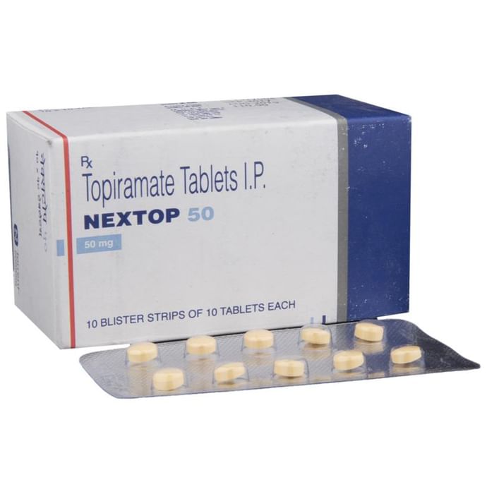 Nextop 50 Tablet is a medicine used to treat epilepsy (seizures) and to prevent migraines. It is also used in the treatment of Lennox-Gastaut syndrome (a rare, but severe form of epilepsy that starts in early childhood). Nextop 50 Tablet may be taken with or without food, preferably at the same time, each day. If you have missed a dose, take it as soon as you remember it and finish the full course of treatment even if you feel better. Stopping the medication suddenly without talking to your doctor may cause an increased frequency of seizures. Your doctor may advise regular monitoring of serum bicarbonate levels while you are taking this medicine. Some of the common side effects of this medicine include nausea, taste change, fatigue, diarrhea, weight loss, loss of appetite, and memory impairment. It may also cause vision problems like myopia or glaucoma, so it is important to get your eyesight checked before you start the treatment and regularly thereafter. You may experience dizziness and sleepiness, so do not drive or do anything that requires mental focus until you know how this medicine affects you. Please consult your doctor if these side effects bother you or do not go away.