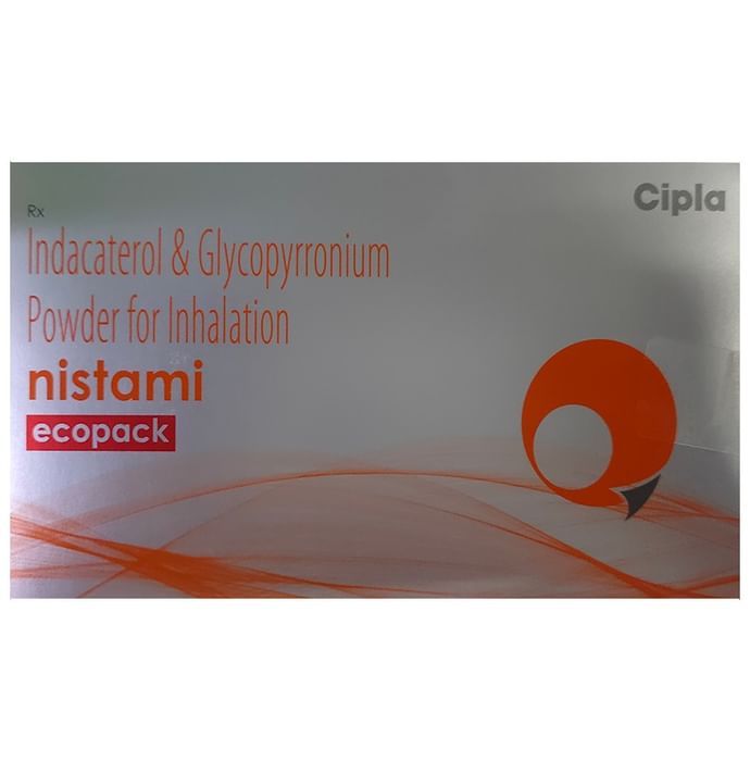 Nistami Ecopack is used for the treatment of chronic obstructive pulmonary disorder (a lung disorder in which the flow of air to the lungs is blocked). It helps in relaxing the muscles of the air passages and making it easier to breathe. It relieves coughing, wheezing and feeling short of breath. Your doctor will tell you how often you need to use your inhaler. The effect of this medicine may be noticeable after a few days but will only reach its maximum after a few weeks. This medicine must be used regularly to be effective, so go on taking it even if you don't have any symptoms. That means it’s doing its job. If you stop taking it your COPD may get worse. This medicine should not be used to relieve sudden shortness of breath. To get the benefit from this medicine you need to make sure you get your inhaler technique right, otherwise, it Does not work as well. The most common side effects are indigestion, high blood pressure, nasopharyngitis (inflammation of the throat and nasal passages), chest pain, fever, sore throat, cough, headache, dizziness, inflammation of the nose, and sinus inflammation. If you get there, don’t stop taking it but do talk to your doctor. You can prevent some of these symptoms by rinsing your mouth and throat with water or brushing your teeth after using your inhaler. There are other, rarer side effects which can be serious. Talk to your doctor if you're worried about them.