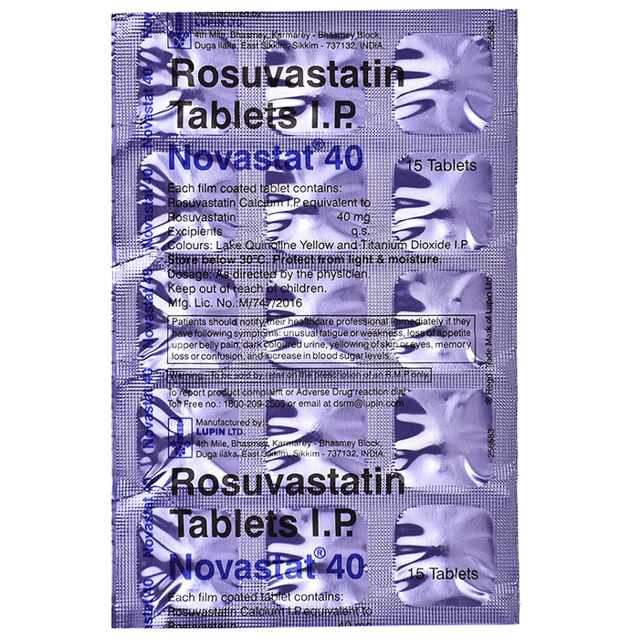In Treatment of High cholesterol Novastat 40 Tablet belongs to a group of medicines called statins. It works by reducing the amount of “bad” cholesterol (LDL) and raising the amount of “good” cholesterol (HDL) in your blood. Lowering the amount of cholesterol reduces the chances of heart diseases and helps you remain healthier for longer. Take it regularly and make appropriate lifestyle changes (such as eating healthy and staying active) to maximize the effectiveness of this medicine. Keep taking it even if you feel well. In Prevention of heart attack and stroke High levels of cholesterol can cause your blood vessels to narrow (atherosclerosis) and put you at risk of having a stroke or heart disease. Lowering the amount of this fat reduces the chances of this happening and helps you remain healthier for longer. Keep taking this medicine even if you feel well.
