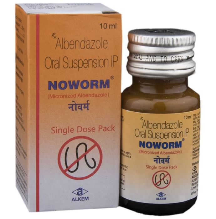 Noworm Oral Suspension is an antiparasitic medicine, used for the treatment of parasitic worm infections. It works by killing the worms that cause infections and stops the infection from spreading. Noworm Oral Suspension should be used in the dose and duration as advised by your doctor. Take it with or without food, preferably at a fixed time. Avoid skipping any doses and finish the full course of treatment even if you feel better. Do not take a double dose to make up for a missed dose. Simply take the next dose as planned. Some people may experience vomiting, dizziness, increased liver enzymes, nausea, and loss of appetite as the side effects of this medicine. Please consult your doctor if these side effects persist for a longer duration. You may be monitored with blood tests and liver function tests throughout your treatment.