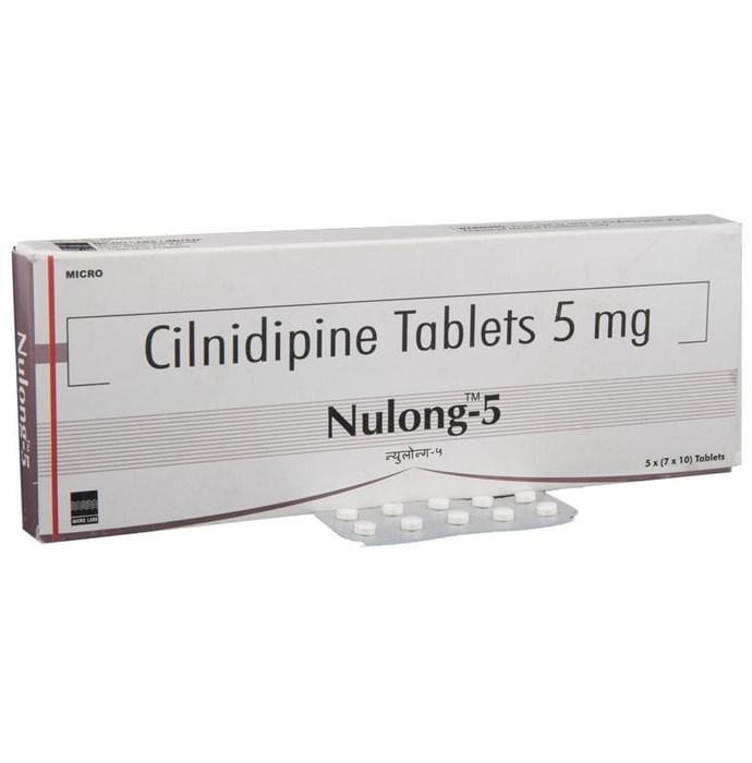 Nulong 5 Tablet is a medicine used to treat high blood pressure (hypertension). It belongs to a class of medicines known as a calcium channel blocker which helps to lower blood pressure. This helps prevent heart attacks and strokes. It may also be prescribed to prevent angina (heart-related chest pain). Nulong 5 Tablet may be prescribed alone or along with other medicines. The dose depends on the severity of your condition. You can take it at any time of day, with or without food, but it is best to take it at the same time each day. Keep taking it for as long as advised by your doctor. Do not stop this medicine on your own, even if you feel well because high blood pressure often has no symptoms. This makes it hard to identify any sudden spike and if you stop taking it, your condition may get worse. Keeping active with regular exercise, reducing your weight, and eating a healthy diet will also help control your blood pressure. Follow your doctor’s advice while taking this medicine. The most common side effects include fatigue, edema (swelling in the feet), sleepiness, dizziness, flushing, the unusual beating of the heart (palpitations), and headache. Consult your doctor if any of these bother you, or do not go away. Side effects like swelling in the feet or ankles and palpitations are lesser in severity than other similar medicines of the group. Studies have shown that it also has a protective effect on the kidneys. Before taking it, let your doctor know if you have any liver, kidney, or heart problems. Pregnant or breastfeeding women should also consult their doctor for advice before taking this medicine. You also need to tell your doctor what other medicines you are taking, especially those used to treat high blood pressure or heart conditions. You should have your blood pressure checked regularly to make sure that this medicine is working properly.