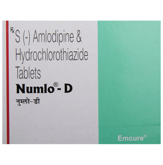 Numlo-D Tablet is a combination medicine used in the treatment of hypertension (high blood pressure). It works by relaxing the blood vessels and making the heart more efficient at pumping blood throughout the body. It also removes extra water and certain electrolytes from the body. It is advised to take Numlo-D Tablet at a fixed time each day to maintain consistent levels of medicine in the blood. It is suggested to take it at day time to avoid the frequent urination at night. In case you have missed any doses, take it as soon as you remember it. Never skip any doses and finish a full course of treatment even if you feel better. It is important that this medication is not stopped suddenly without talking to the doctor as it may worsen your symptoms. It may cause side effects like headache, edema, fatigue, nausea, abdominal pain, and sleepiness. These are usually mild but let your doctor know if they bother you or last more than a few days. You may be asked for regular monitoring of blood pressure and electrolytes level while taking this medicine. If dizziness happens, avoid driving or attention seeking activity while taking this medicine. Before taking this medicine, tell your doctor if you have liver or kidney disease. You must tell your doctor if you are pregnant or breastfeeding. You should also let your healthcare team know all other medicines you are taking as they may affect, or be affected by this medicine.