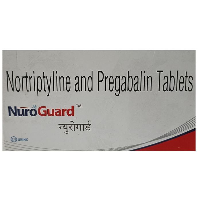 Nuroguard Tablet is a combination medicine used for the treatment of neuropathic pain. This medicine decreases the pain by stopping the movement of pain signals to the brain. Nuroguard Tablet is taken by mouth, with or without food and preferably at bedtime. It is advised to take it at the same time each day as this helps to maintain a consistent level of medicine in the blood. Take this medicine in the dose and duration advised by your doctor as this is a habit-forming medicine. If you miss a dose of this medicine, take it as soon as you remember. Finish the full course of treatment even if you feel better. It is important not to stop this medication suddenly without talking to the doctor. Some common side effects of this medicine include constipation, difficulty in urination, weight gain, tiredness, and dryness in mouth. It may also cause dizziness and sleepiness. So, do not drive or do anything that requires mental focus until you know how this medicine affects you. This medicine may cause weight gain and to control it, you should exercise regularly and take a balanced diet. It is important to inform your doctor if you develop any unusual changes in mood or behavior, new or worsening depression, or suicidal thoughts. Before taking this medicine let your doctor know if you suffer from kidney or liver disease. Your doctor should also know about all other medicines you are taking as many of these may make this medicine less effective or change the way it works. Inform your doctor if you are pregnant, planning pregnancy or breastfeeding.