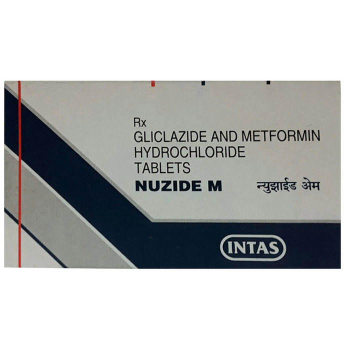 Nuzide M Tablet belongs to a category of medicines known as anti-diabetic drugs. It is a combination of two medicines used to treat type 2 diabetes mellitus in adults. It helps control blood sugar levels in people with diabetes. Nuzide M Tablet should be taken with food. Take it regularly at the same time each day to get the most benefit. Your doctor will decide what dose is best for you and this may change from time to time according to how it is working according to your blood sugar levels. Keep taking this medicine, even if you feel well or your blood sugar levels are controlled. If you stop it without consulting your doctor, your blood sugar levels could rise and put you at risk of kidney damage, blindness, nerve problems and loss of limbs. Remember that it is only part of a treatment program that should also include a healthy diet, regular exercise, and weight reduction as advised by your doctor. Your lifestyle plays a big part in controlling diabetes. The most common side effect of Nuzide M Tablet is low blood glucose levels (hypoglycemia). Make sure you recognize the signs of having low blood glucose levels, such as sweating, dizziness, headache, and shaking and know how to deal with it. To prevent this, it's important to have regular meals and always carry a fast-acting source of glucose such as sugary food or fruit juice with you. Drinking alcohol can also increase your risk of low blood sugar levels and should be avoided. Other side effects that may be seen on taking this medicine include taste changes, nausea, diarrhea, stomach pain, headache, and upper respiratory tract infection. Some people may find that they put on weight with this medicine. You should not take it if you have type 1 diabetes mellitus, if you have diabetic ketoacidosis (high levels of acid in your blood), or if you have severe kidney or liver disease. Before taking this medicine, tell your doctor if you have ever had heart disease. It may not be suitable. Pregnant or breastfeeding women should also consult their doctor before taking it. Your blood sugar levels should be checked regularly and your doctor may also advise blood tests to monitor your blood cell counts and liver function.