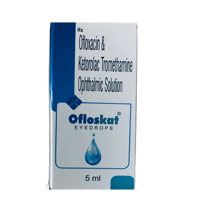 Ofloskat Eye Drop is a prescription medicine used to treat eye infections. It kills the bacteria and inhibits the spread of the bacteria. This way it helps relieves redness and swelling in the eye at the same time speed up the healing process. Ofloskat Eye Drop is to be used only in the affected eye in the dose and duration as advised by the doctor. Wash your hands before using this medicine. It is advised to check the label for directions before use. Do not skip any doses and finish the full course of treatment even if you feel better. The most common side effects include discomfort, irritation, and burning sensation at the application site. If these side effects persist for a longer duration, inform your doctor. In case of accidental contact with your ears, nose, or mouth, immediately rinse it with water. Inform your doctor if you have a known allergy to any of the ingredients in this medicine or if you are taking any other medication. It is advised not to drive or operate heavy machinery immediately after using this medicine as it may cause temporary blurring of vision and may affect your ability to drive.