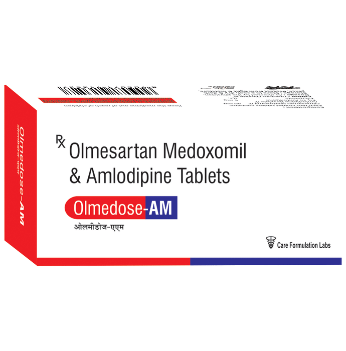 Olmedose-AM Tablet contains two medicines, both of which help to control high blood pressure. Lowering blood pressure helps to reduce your risk of having a heart attack or a stroke in the future. Olmedose-AM Tablet may be taken on an empty stomach or along with food. However, it is better to take it regularly at a fixed time each day, as prescribed by your doctor. The dose will depend on your condition and how you respond to the medicine. It is important to keep taking this medicine even if you feel well. By lowering your blood pressure, it is reducing your risk of heart attack or stroke so do not stop taking it unless your doctor tells you to. You can help this medication work better by making a few changes to your lifestyle by being active, stopping smoking and eating low salt and low-fat diet. The most common side effects of this medicine include swelling in your ankles or feet (edema), sleepiness, dizziness, headache, taste change, upset stomach, and tiredness. Since it may cause sleepiness and dizziness, do not drive or do anything requiring concentration until you know how it affects you. Talk to your doctor if any of the side effects bother you or do not go away. Before taking this medicine, let your doctor know if you have any kidney or liver problems or severe dehydration. Pregnant or breastfeeding women should also consult their doctor before taking it. While using this medicine, your blood pressure will be monitored regularly and your kidney function may also need to be tested.